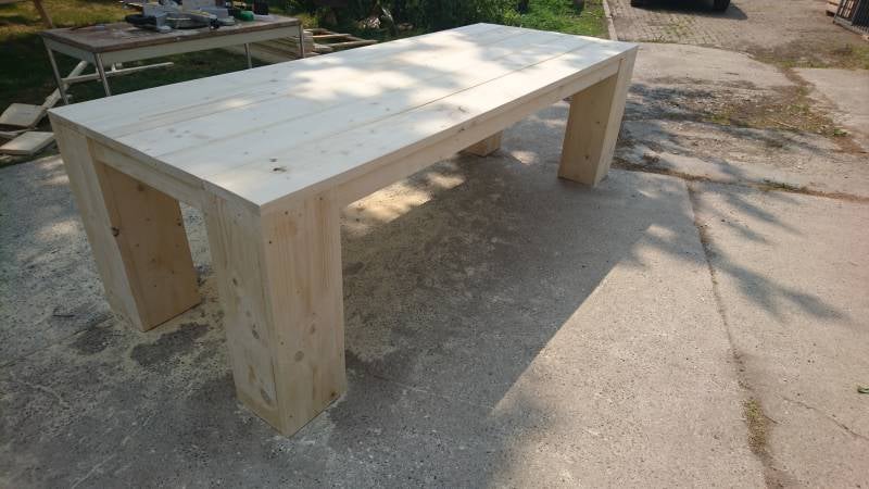Ten opzichte van de tuintafel basic wordt deze tafel uitgevoerd met dichte blokpoten.